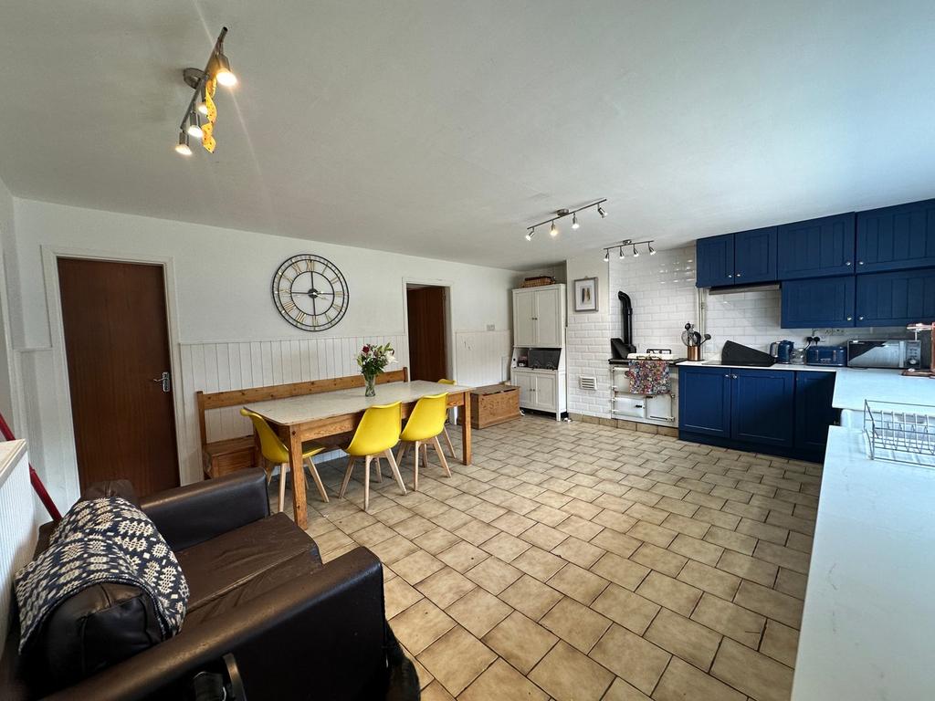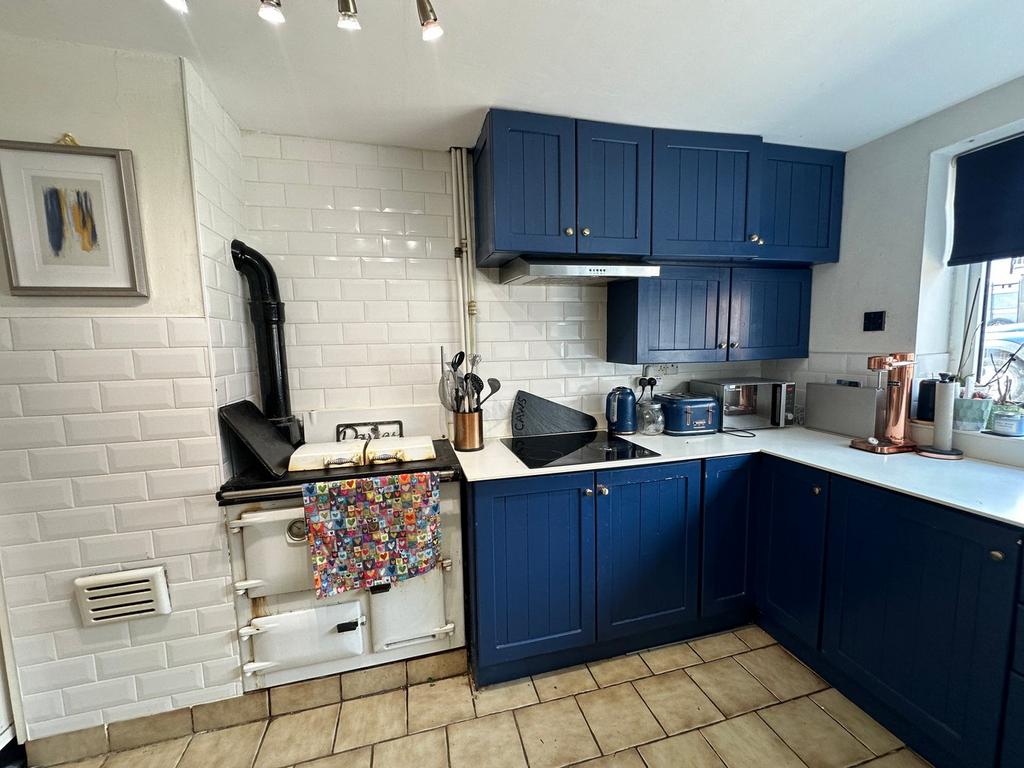 Base and wall mounted units with work surfaces to include integrated Belfast sink and an electric hob. Oil fired Rayburn utilised for cooking and hot water only. Plumbing for dishwasher. Tiled flooring. Window to rear.