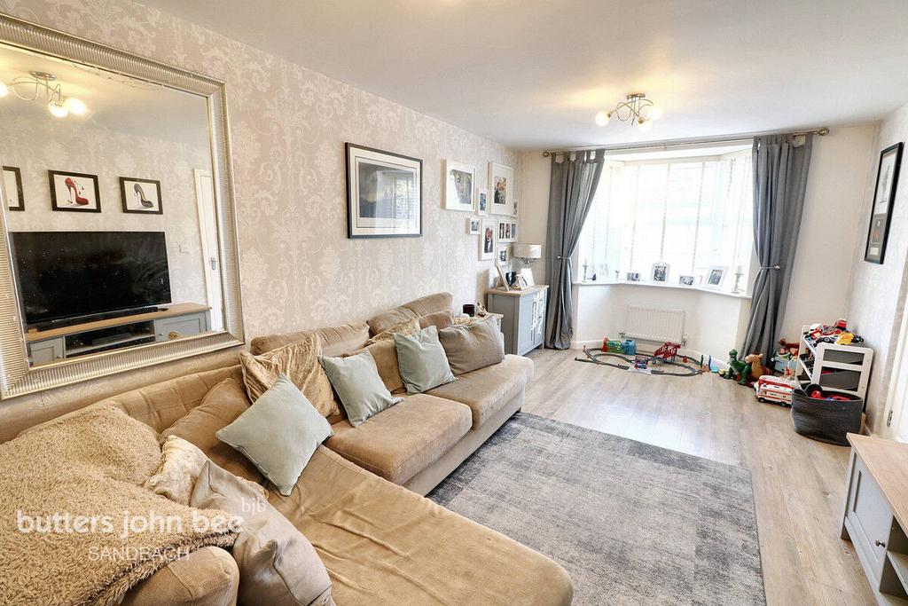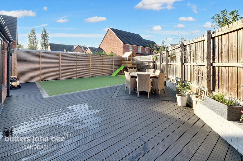 The property is approached via a driveway for two cars and access to the garage. There is access down the side of the property into the fully enclosed rear garden. The rear garden is low maintenance with artificial grass, composite decked area, raised borders and garden shed.