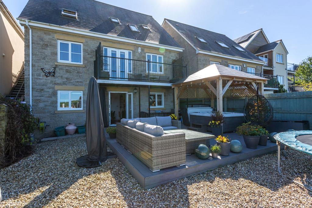 A level tarmac driveway with space to park a couple of vehicles, sits in front of an integral double garage with two traditional up and over doors. A tall hedgerow border to the front of the garden provides some privacy and is laid to shingle with a small patio area leading up to the front door. A section of composite decking also provides an attractive little seating spot which captures a lovely bit of sunshine. The front of this home is somewhat unassuming, appearing to be perhaps a small bungalow, but however hiding two further floors of impressive accommodation below.