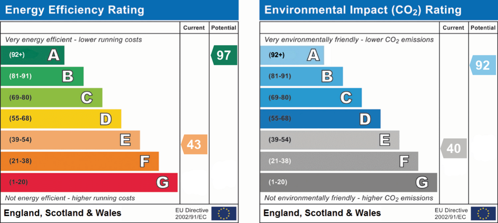Fitted with a modern traditionally styled suite in white with chrome fittings and comprising a panelled bath with antique style mixer tap and flexi hose shower head attachment plus a ‘Mira’ electric shower unit over, folding shower screen, vanity wash hand basin unit with cupboards below and mirror fronted medicine cabinet over, close coupled toilet, extensive ceramic tiling to compliment the suite, radiator/towel rail, large built in linen cupboard, frosted double glazed window.
