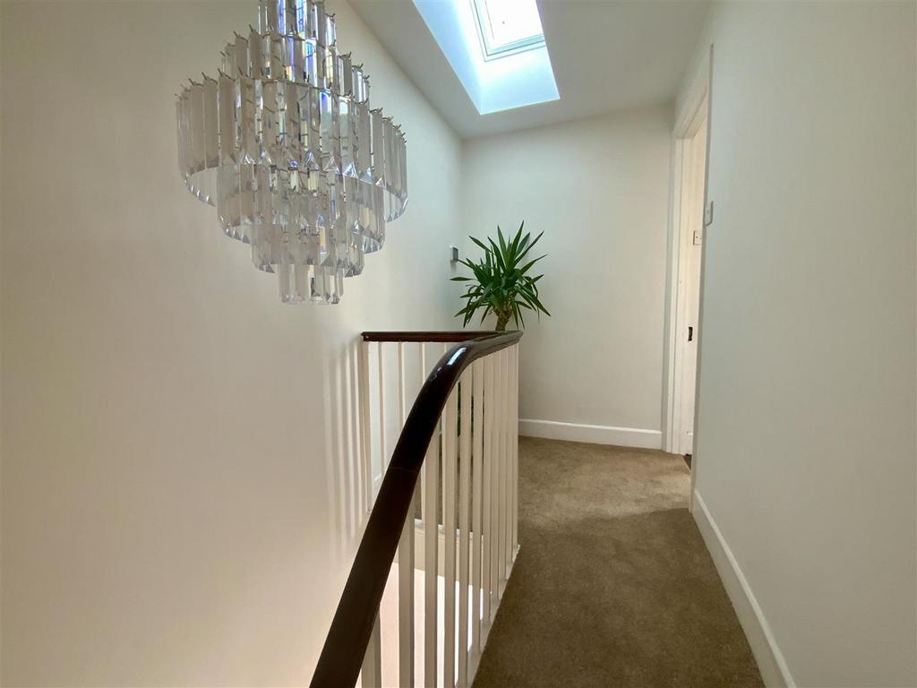 Entrance Hall - Understairs storage cupboard with stripped wood door, wooden flooring, radiator.