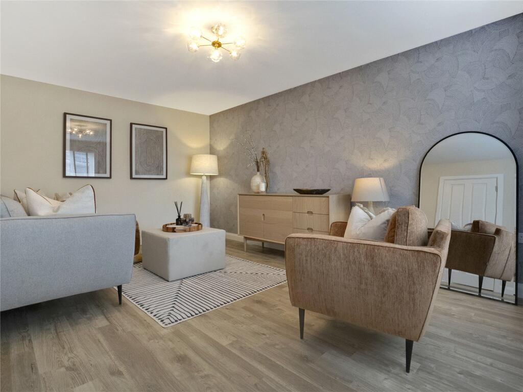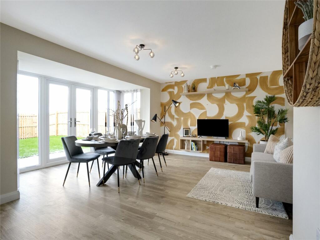 Enter to find a bright and welcoming entrance hall with cloakroom. The hallway provides access to a spacious lounge and study. The hallway leads through to a superb open plan kitchen, dining area, and family space with feature bay and French doors to the garden.