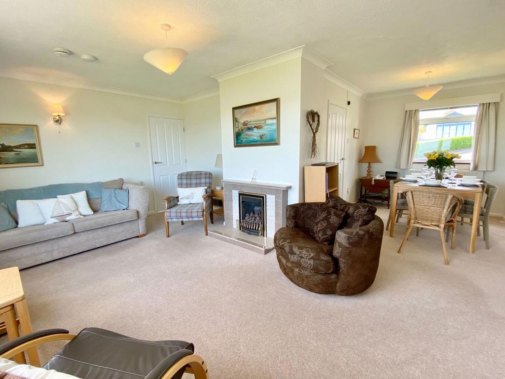 'L' shaped dual aspect room affording truly stunning views from picture window to the Camel Estuary, Rock and Porthilly View. Two central heating radiators, power points, two centre ceiling lights, television point, two wall lights, door to: