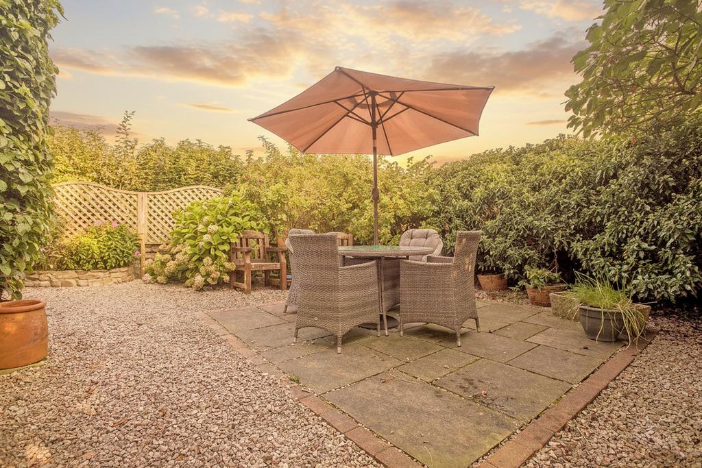 A welcoming gravelled driveway with surrounding stone walls and raised beds packed full of colour. There is a shed for storage and a gated path leads around the property to a 'walled garden' consisting of beautiful planting throughout with mature trees and shrubs for interest with a paved area perfect for sitting out to enjoy the peaceful countryside location. The gardens are designed to be low maintenance while offering an abundance of colour and interest all year round.