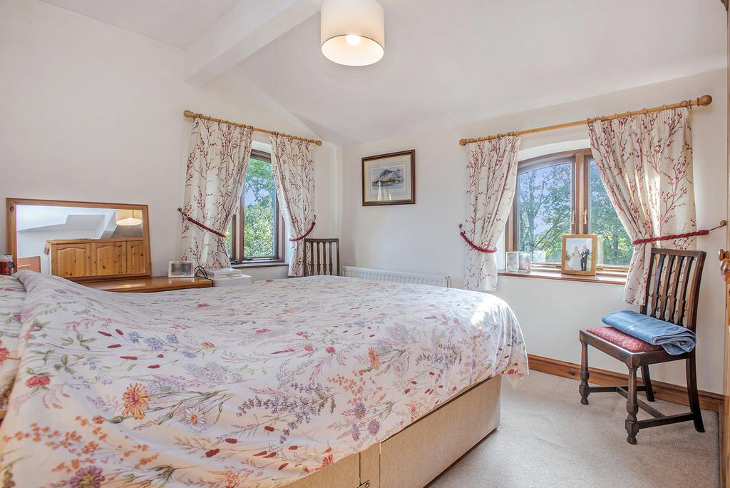 A double bedroom enjoying dual aspect elevated views out to surrounding countryside. There is a large built-in wardrobe and storage to utilise.