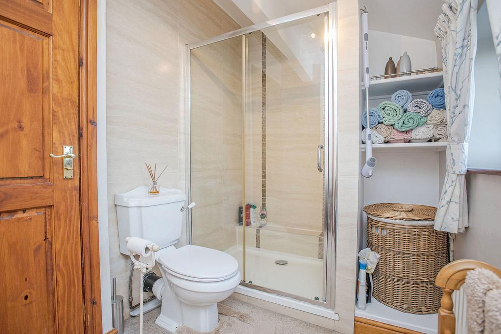 A good sized shower room with a wonderful view! Consisting of a large shower cubicle with a mains fed shower, WC and hand basin with tiled splashbacks. There is fitted shelving to the side of the shower, perfect for toiletries and towels.