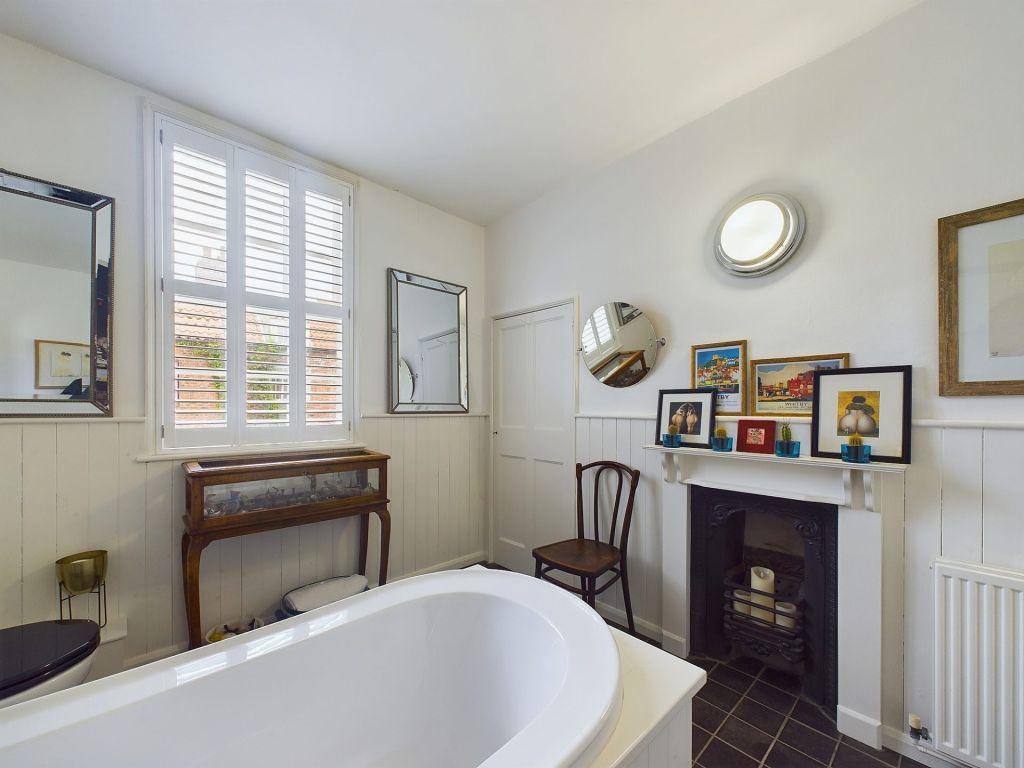 An elegant townhouse with stylish interiors and period features located just yards from Whitby’s town centre and harbourside. Dating from the early 1800’s this Grade II Listed property has an attractive brick façade with stone rusticated quoins, whilst inside there are original fireplaces and sash windows. There are three floors of accommodation with a traditional layout having the living rooms and kitchen downstairs and the bedrooms and bathrooms on the upper floors. There are two reception rooms comprising a lounge and dining room with the lounge having a fireplace with log burner and large sash window that floods the room with natural light and affords views across the period properties of Bagdale. The dining room is to the rear of the property, and it has a fireplace with alcove shelving and an understairs cupboard. The kitchen is within a rear extension and has a range of bespoke cabinets with solid Oak worktops, a ceramic sink, a large kitchen island and enough room for a table and seating. Upstairs there are three double bedrooms with the two upper floor bedrooms having dormer windows and there are two bathrooms comprising a bathroom and a shower room, both with three-piece suites. Outside there is a stone-flagged yard to the rear that faces south and has an outbuilding and steps lead out to the rear access road. The property is above a basement flat with step access to the front door and is subject to a flying freehold.