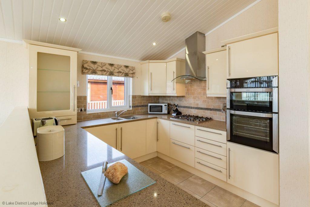 Kitchen Area - Fully equipped fitted kitchen which includes a built-in double oven, under counter fridge and freezer, dishwasher, gas hob, microwave, toaster and kettle.