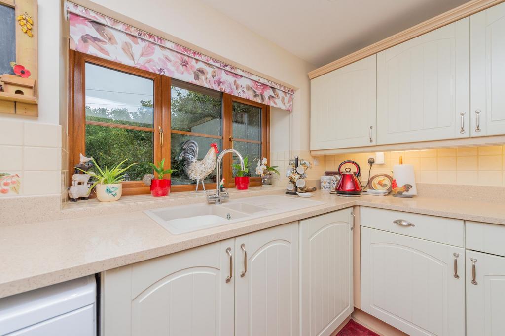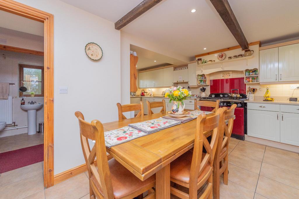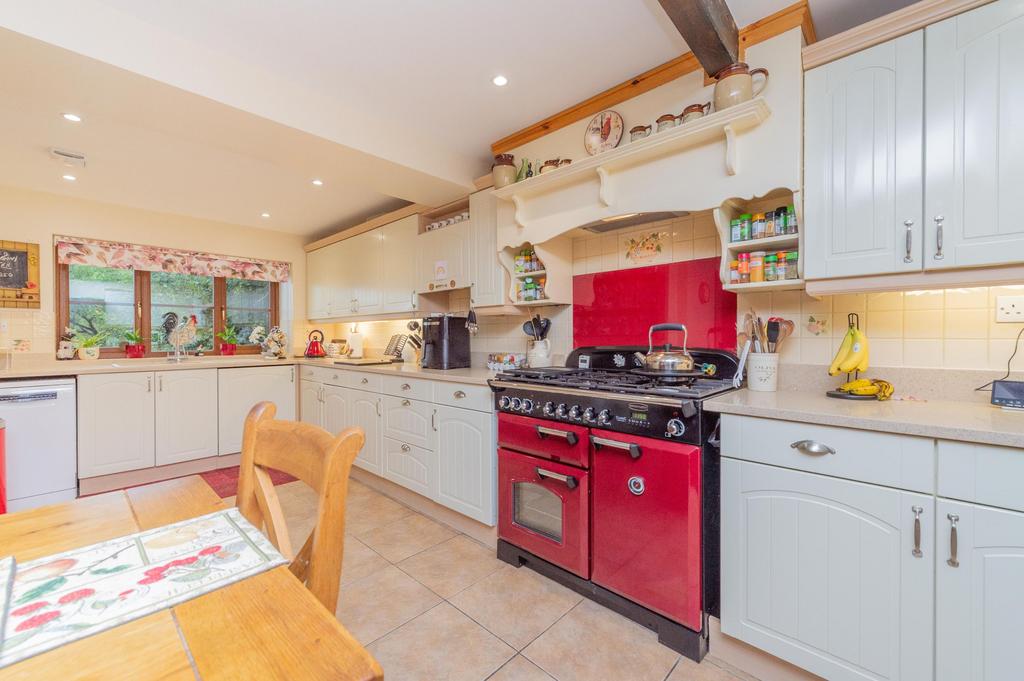 Enter Oak Haven Cottage through a covered walkway and into the welcoming porch area. From here, you'll find a handy storage cupboard and a downstairs shower room for added convenience. The kitchen/breakfast room is a delightful space, featuring neutral tiled flooring, cream shaker style fitted cupboards, and a sleek cream quartz worksurface. A composite sink with a window overlooking the front garden provides a picturesque view while you prepare meals. The kitchen is equipped with an integral washing machine and dishwasher, and the eye-catching red Electric Rangemaster Classic 100 stove adds a touch of style and functionality. A door from the kitchen leads to the stairs, and another connects to the cosy lounge.