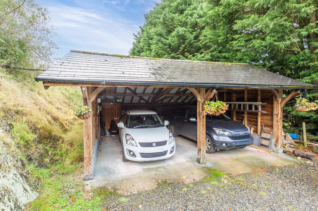 Oak Haven Cottage is nestled in a serene countryside setting, offering approximately 8 acres of picturesque grounds. The property is accessed via a gravel track leading to a double carport and a stable block.
