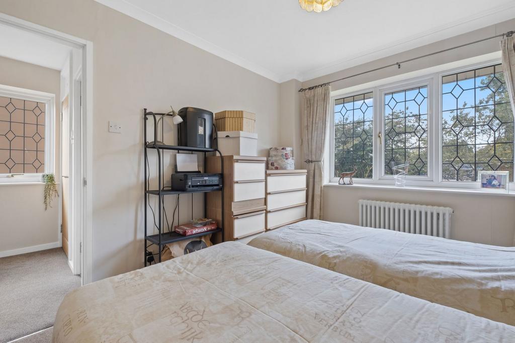Built in double wardrobe with cupboard over, radiator and leaded light double glazed window overlooking the rear garden.