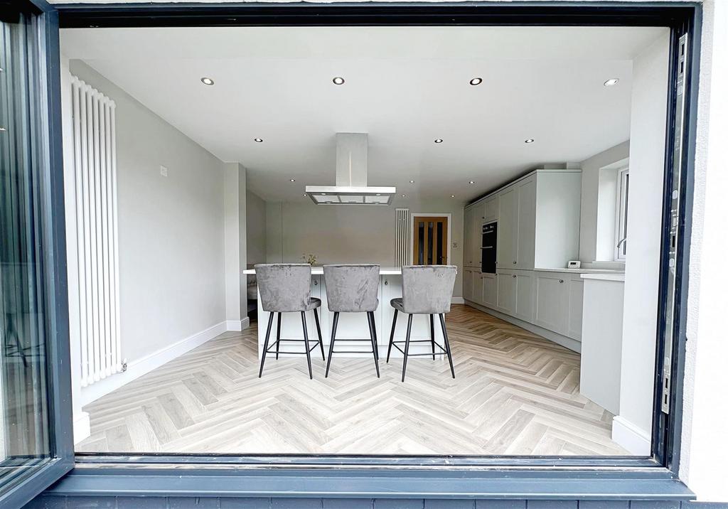 Kitchen/Living/Dining Area - 5.11m x 4.75m (16'9 x 15'7) - The kitchen/living/dining area which has been extended to create a beautiful space with contemporary units with contrasting work surfaces and up stands, incorporating a stainless steel sink with a chrome mixer tap. The central heating boiler is housed within a cupboard. There is an integral fridge/freezer, a housed electric double oven and a central island with an induction hob and a stainless steel extractor fan above. Light maximising bifold doors which lead onto the garden, a u.PVC double glazed window, two upright central heating radiators, luxury click vinyl to the floor and spotlights to the ceiling.