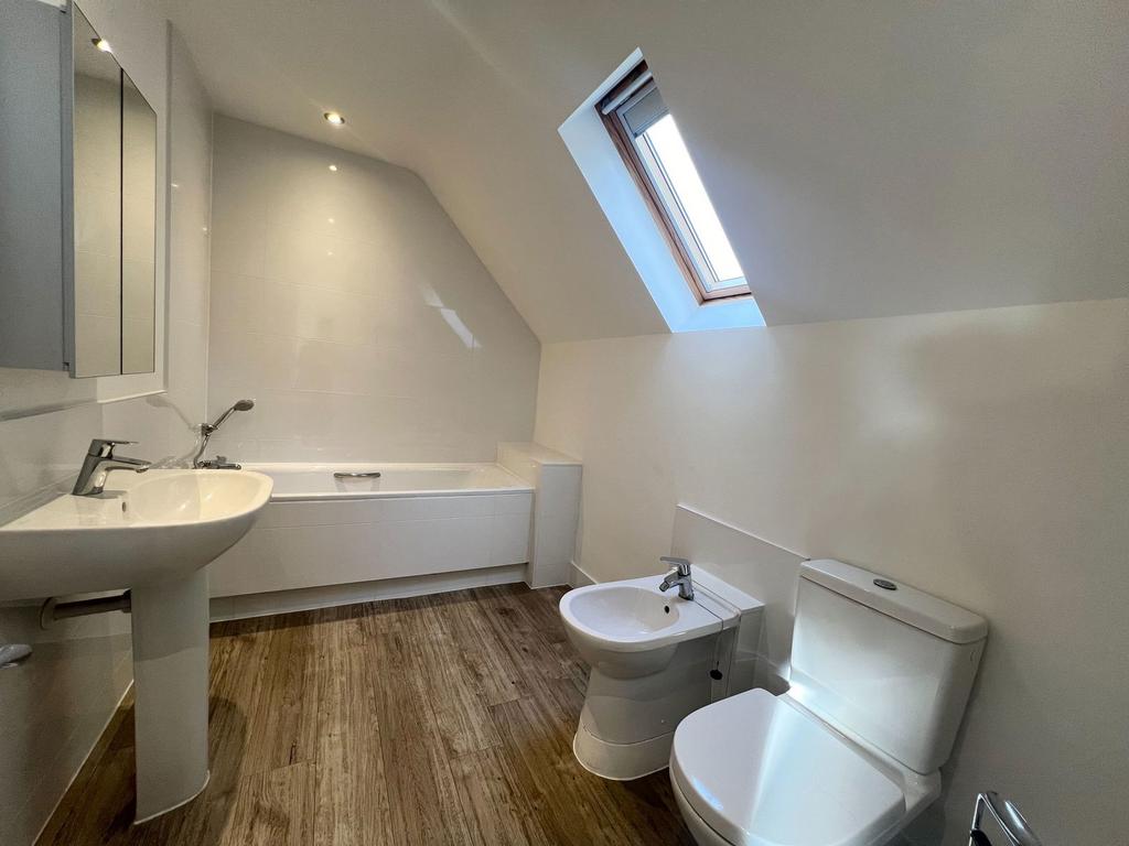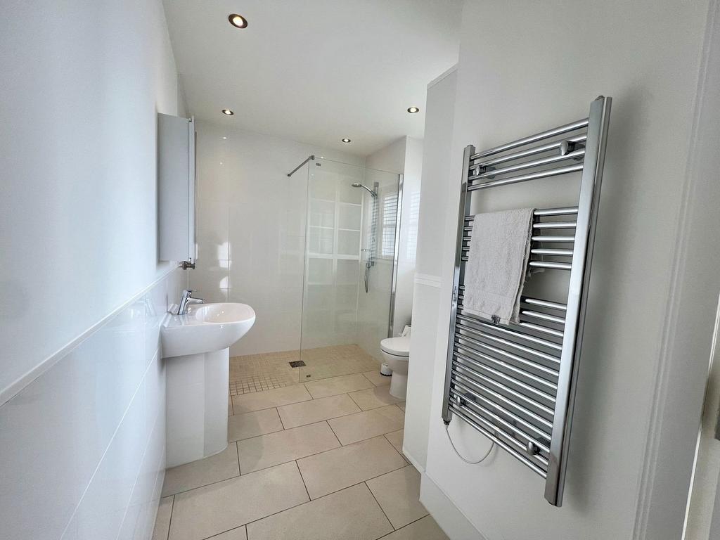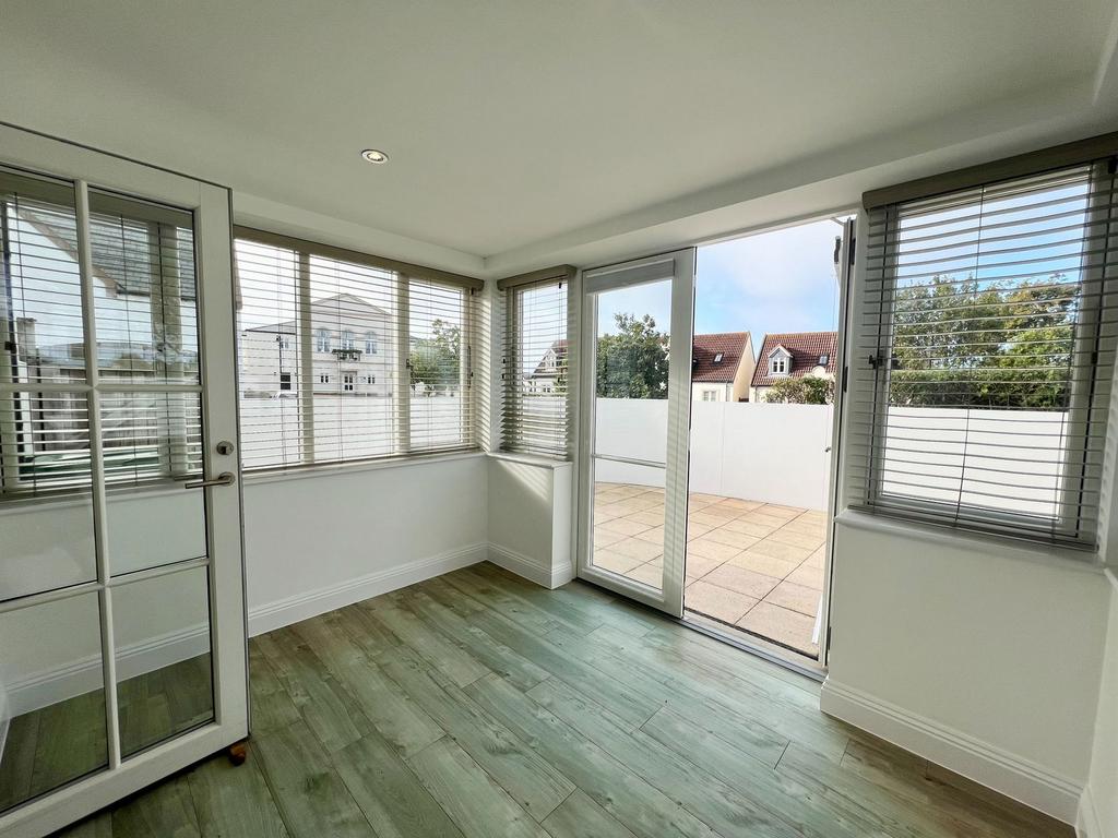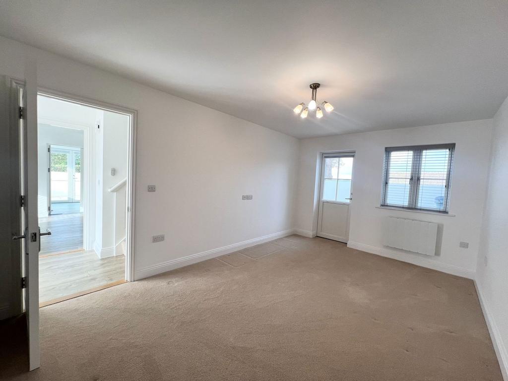 The ground floor includes a second bedroom with its own direct access to the garden, as well as a convenient shower room. Upstairs, the primary bedroom is filled with natural light, featuring multiple built-in wardrobes and a private en-suite bathroom.