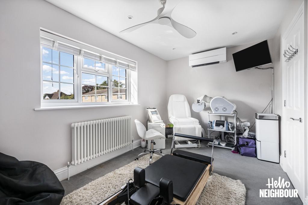 The top floor comprises two generously sized double bedrooms, and built-in storage space in the hallway for added practicality. Residents benefit from private parking, enhancing the convenience of this lovely home. The property has top of the range air-conditioning throughout and underfloor heating on the ground floor.