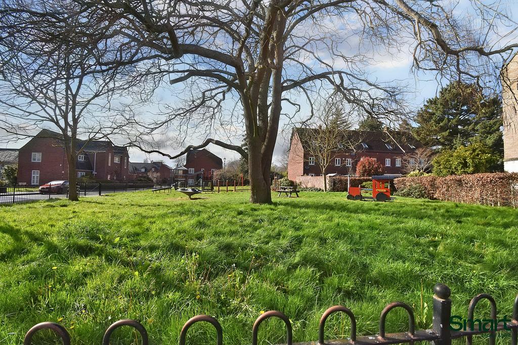 The house overlooks a communal park with a small play area for children, giving a feeling of open green space without the onus of upkeep.