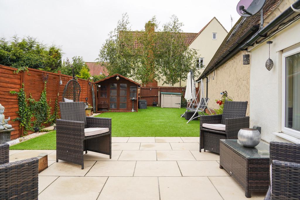 Outside The property enjoys an enclosed south facing landscaped garden with extensively paved dining terrace adjacent an artificial lawn mature shrub beds and borders and a useful timber summer house.