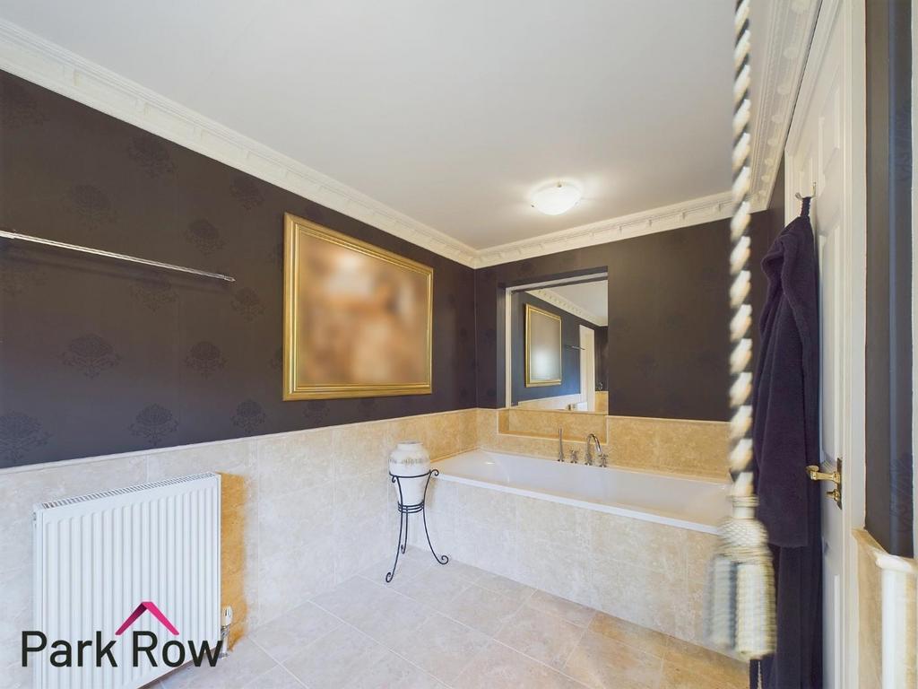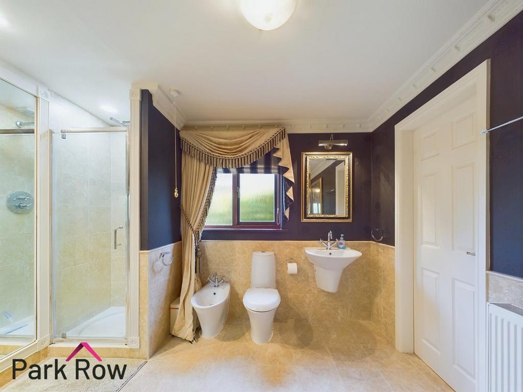 Ensuite To Bedroom Five - 4.09 x 2.00 (13'5" x 6'6") - Obscure double glazed window to the side elevation and includes a white suite comprising; tiled bath with taps and a shower attachment, tiled alcove above the bath for storage, close coupled w/c, floating hand basin with chrome taps over, bidet, fully tiled mains shower with a glass shower screen, central heating radiator, half tiled to the remaining walls plus an internal door which leads into the entrance hallway.