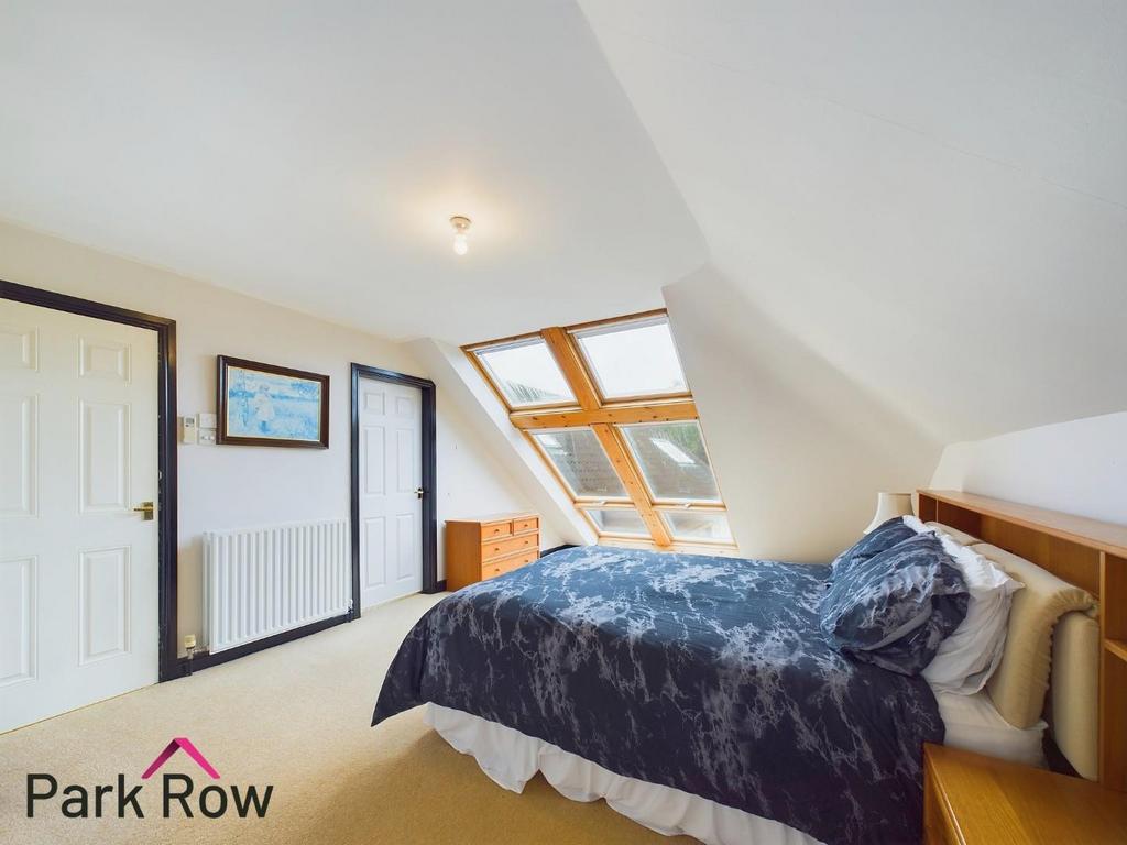 Bedroom Two - (5.53 x 3.91) + ( 4.24 x 2.52) ((18'1" x 12'9") + - Double glazed full length Velux windows to the rear elevation allowing in floods of light, two further Velux double glazed windows to each side elevation, aircon fitted, built in white wooden shaker-style wardrobe, central heating radiator and an internal door which leads into;