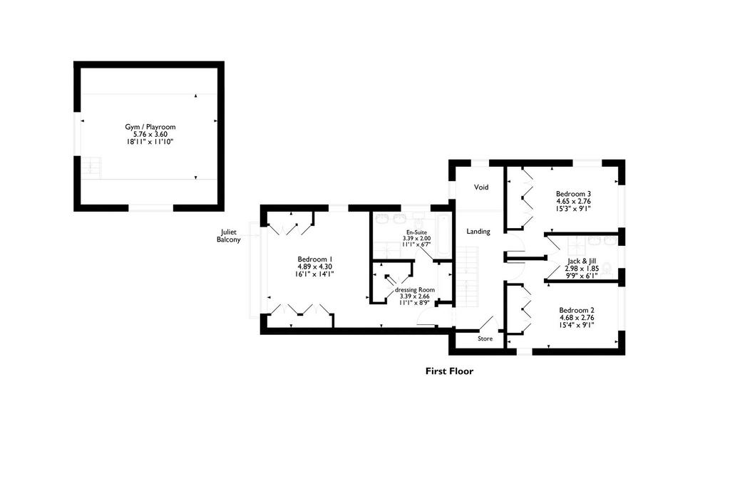 First floor gym / games room 5.76m x 3.60m (18ft 10in x 11ft 9in)