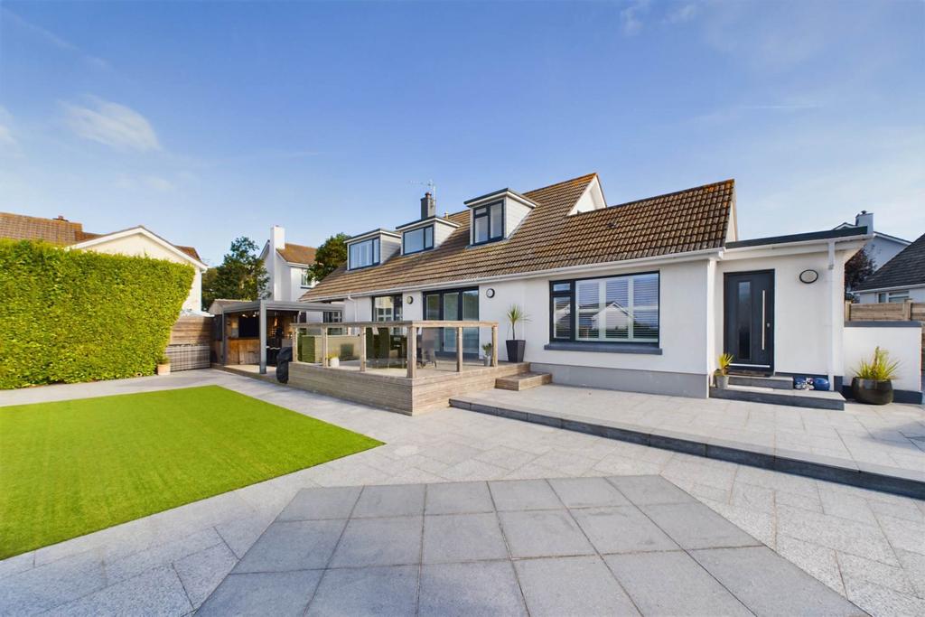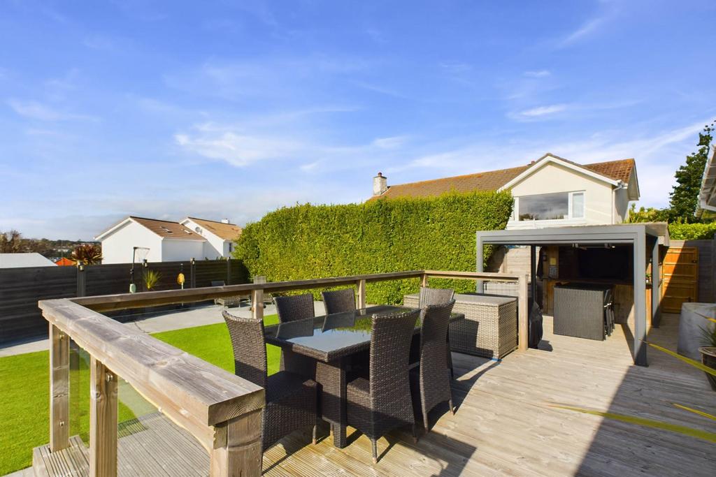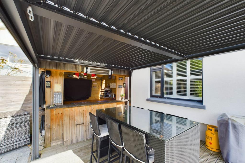 Outside, the large, low maintenance garden offers an inviting space for outdoor entertainment, also including a bar and hot tub.