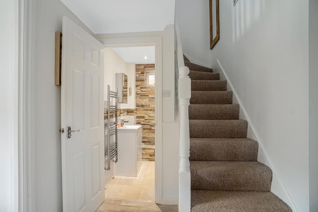 A well-kept, south-facing rear garden, perfect for summer barbecues while entertaining family and friends; facilitated by the large, paved patio. Sleeper-style steps lead up to a lawn, the garden itself being fully enclosed by timber fencing and therefore safe for young children. Further benefits include an outside water tap, wall lighting and gated pedestrian access to the front garden.