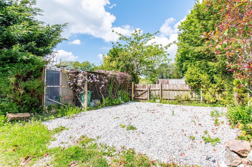 The property features a detached garden with a variety of mature bushes, shrubs, and trees, along with a well-maintained lawn. The boundaries are defined by feather-edged fencing on both the rear and side aspects. The garden also includes a wooden shed and a lean-to structure with a concrete base, providing extra storage. At the front of the property, a wooden security gate leads to an enclosed paved courtyard, complete with a wall-mounted light, an outdoor tap, and storage for oil.