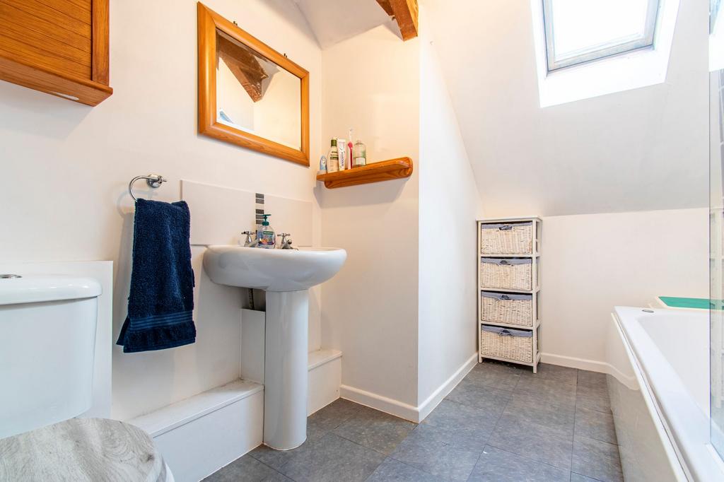 Additional features include a well-appointed family bathroom, offering comfort and convenience for all residents, and a welcoming front porch that adds to the home's overall charm. With its combination of modern amenities and traditional character, this cottage presents an ideal living environment for those seeking both comfort and style.