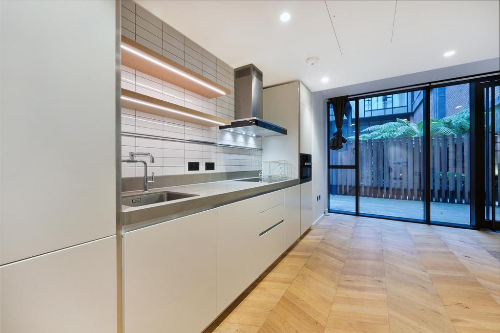 The apartment offers an open plan kitchen / living area with individually tailored bespoke cabinetry and engineered wood flooring, sleeping area with built in wardrobes, marble effect bathroom, the apartment is finished to a high specification throughout.