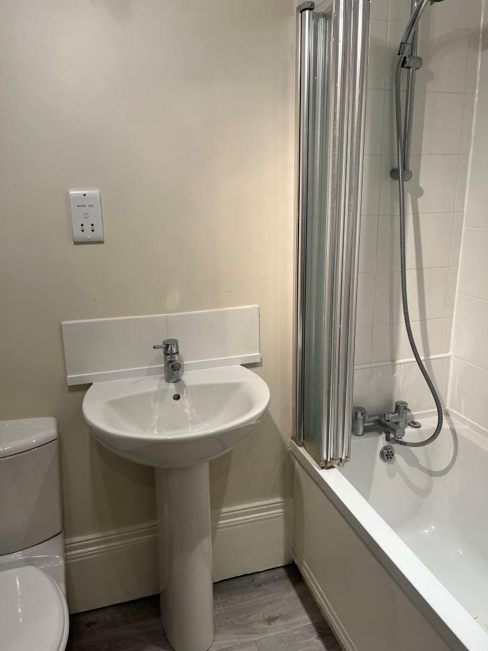 Fully fitted with a full bath, sink and WC. Overhead shower and screen.