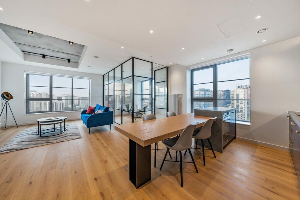 Goodluck Hope apartments embrace a chic warehouse-inspired design, reflecting the durability and charm of raw materials. Thoughtful details, such as custom brass faucets embossed with the Goodluck Hope maker-s mark, showcase the meticulous craftsmanship throughout. Residents will enjoy exclusive access to "The 1595 Club," which includes luxurious amenities like The Steam House, The Work House, The Picture House, The Spice House, and a stunning swimming pool with panoramic views of the Thames.