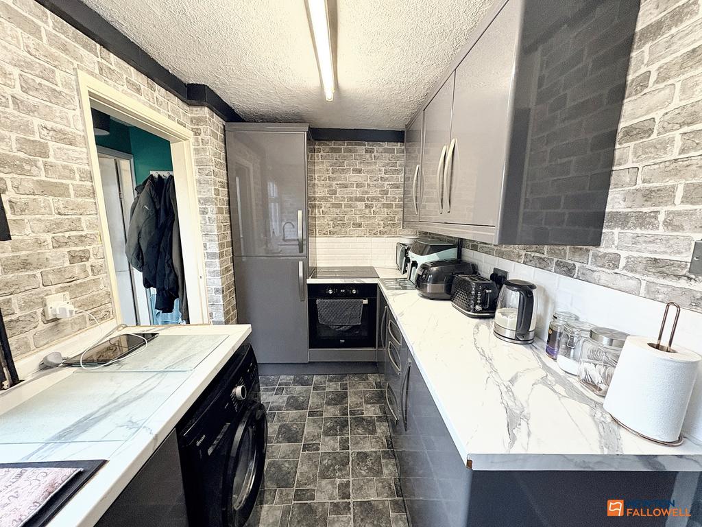 To the rear is the modern kitchen with built in appliances and high quality floor and wall units. Beyond the kitchen is a small rear hallway with access to main bathroom with WC and wash basin, and a back door providing access to the garden.