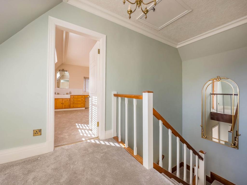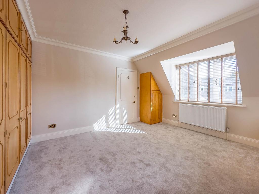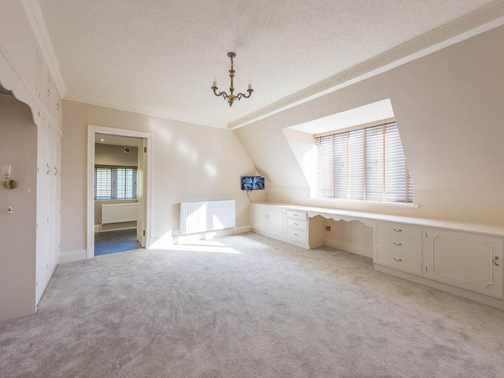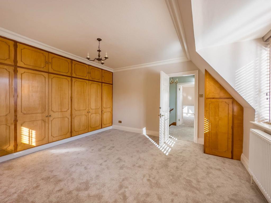 Fitted wardrobes to one wall, matching dresser with wash hand basin, coving to ceiling.