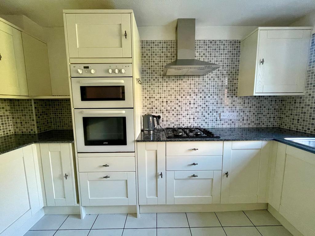 A sloped driveway leads down to the double glazed ENTRANCE PORCH with tiled floor, and into the RECEPTION HALL with under stairs storage. Inner Lobby with CLOAKROOM and personal door to the garage. The SITTING/DINING ROOM is a bright and spacious room with patio doors opening to a tiered patio and garden beyond. Fire surround and mantel with granite hearth and inset living flame effect electric fire. French doors to the CONSERVATORY with double glazed surround, pitched roof and further French doors to the patio and garden. The KITCHEN is fitted with a range of Shaker style units and solid granite work tops with inset sink. Built-in electric oven with grill, provisions for washing machine, slimline dishwasher and free standing fridge/freezer. Window overlooking the front garden.