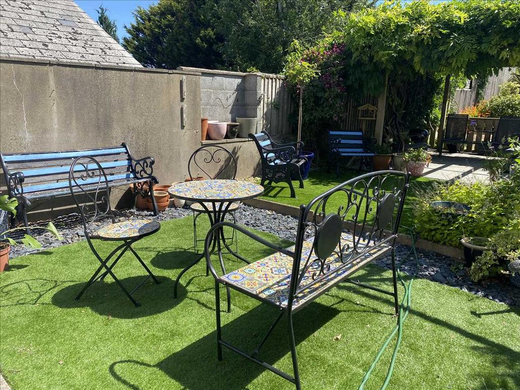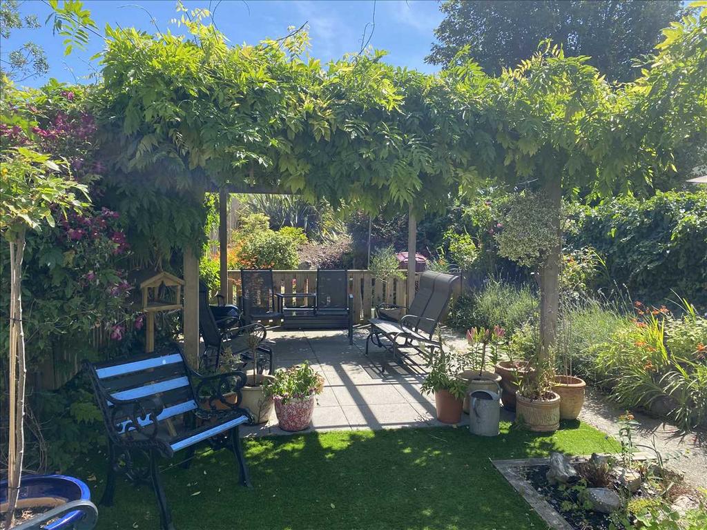 The attractive Rear Garden is a special feature. It incorporates two artificial lawns, a paved patio with pergola, ornamental gravel, mature shrub beds and a feature tree etc. There is also storage and an outside tap.