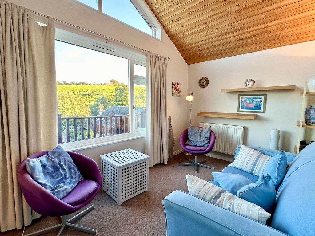 Single aspect room with feature glazed end elevation, window and sliding patio door providing access to Terrace (see later), two central heating radiators, power point, TV point, mezzanine floor with Velux window.