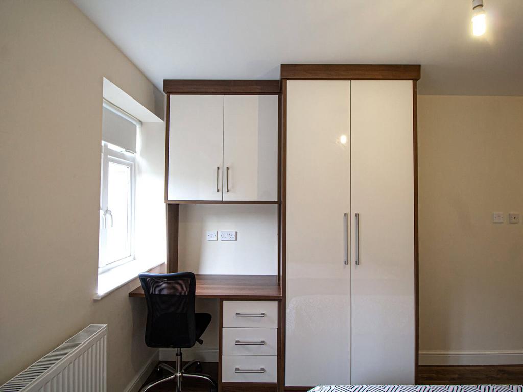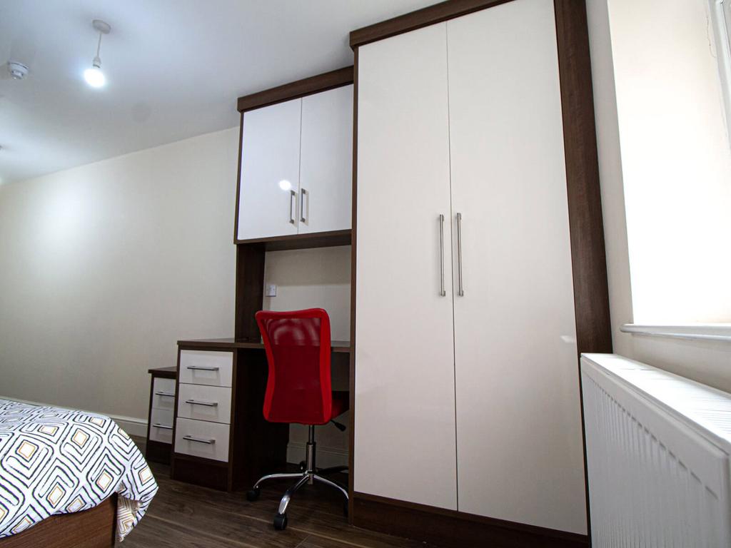 Relax and unwind in the lounge area, furnished with two cosy sofas, a central coffee table, a dining nook and a TV for your ultimate comfort - not forgetting each room has it’s own comfy bed, storage space, and desk area, all furnished with rich wood and white gloss accents.