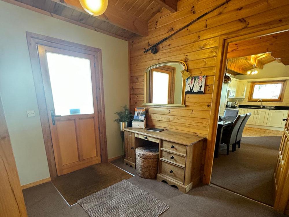 Step inside to a generous hallway leading to an open-plan living area, which includes a modern kitchen, dining space, and a comfortable lounge. Large patio doors open onto a decked patio area, complete with a luxurious hot tub and breath-taking views of the lake. The private fishing peg is just steps away, offering peaceful, scenic moments on the water.