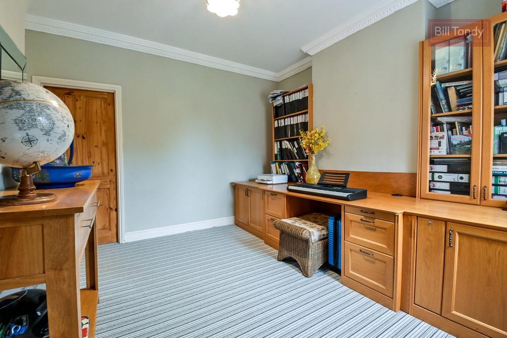 4.06m x 3.69m (13' 4" x 12' 1") 4.06m x 3.69m (13' 4" x 12' 1") approached via a staircase with spindle balustrade and being a superbly versatile space with fitted stylish desk, display shelving, glazed cabinets, useful cupboards and drawers, UPVC double glazed window to front with fitted shutters, radiator, stairs leading to second floor with under stairs storage cupboard and coved cornice. Doors open to: