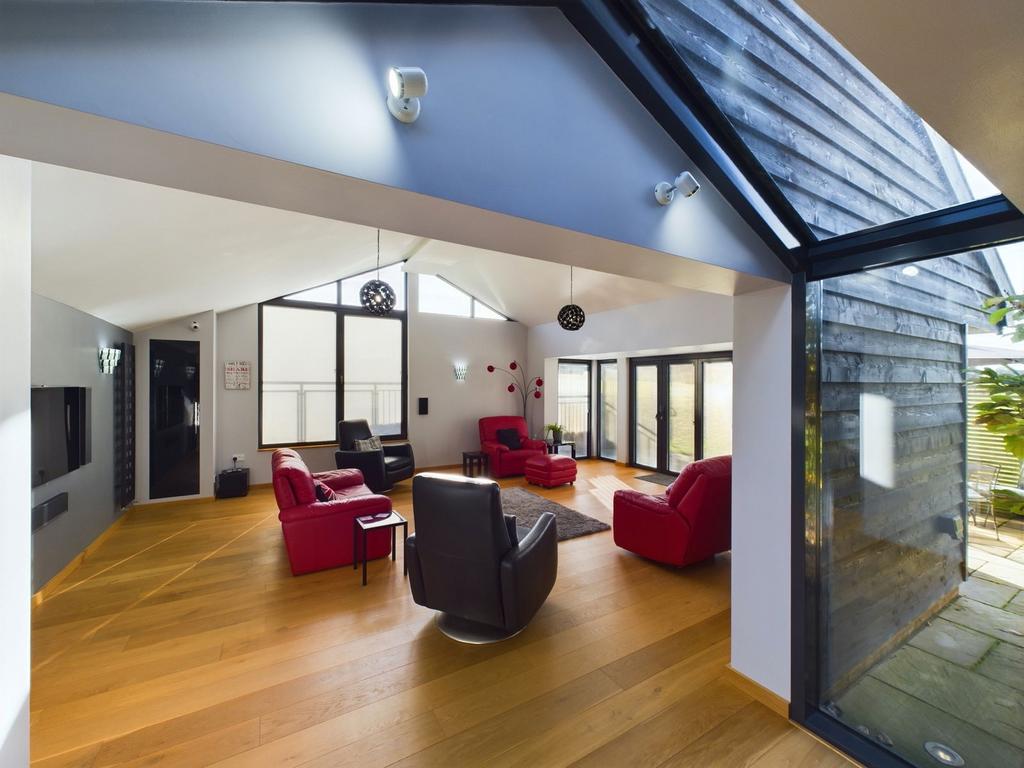 The modern and fully fitted kitchen is a dream for those looking to chat with their guests gathered around the the log burner stove or relaxing in the adjacent vaulted sitting room. this room has bi-fold doors as well as pitch height glazing offering fantastic views across the garden and surrounding countryside.