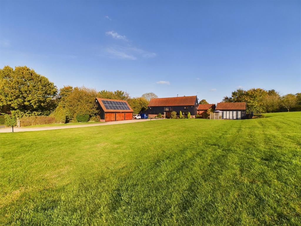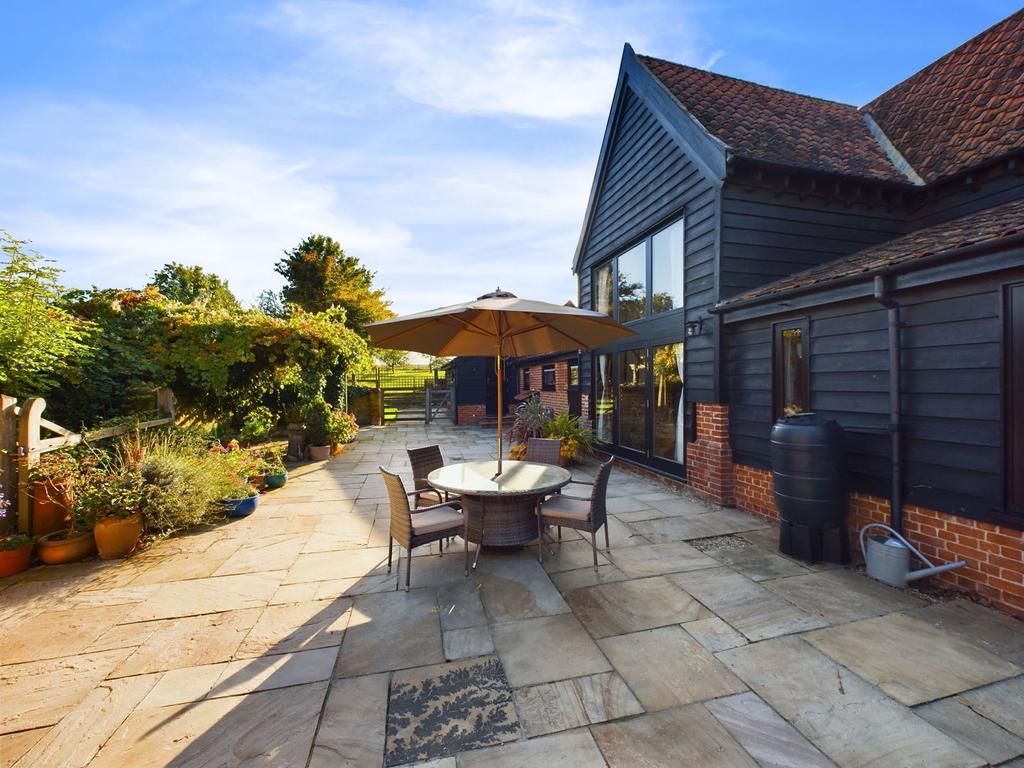 Nestled within its own substantial plot on the edge of Stowmarket and overlooking the Suffolk countryside, this detached barn conversion is the home you have been searching for, with all of the mod cons you would expect in a modern home. The current owner has significantly improved the property by adding the southerly sitting room, upgraded the heating, replacing all the windows & external doors with high quality engineered frames, 30mm double glazing & monkey tail ironwork, and fitting a beautiful new kitchen and downstairs bathroom.