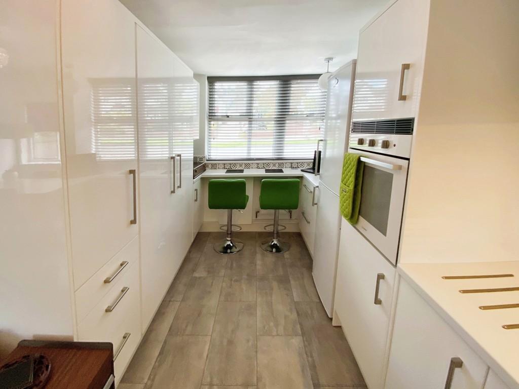 Kitchen are having being refitted with a comprehensive, matching range of high gloss wall and base units, with work top surfaces over, incorporating inset one and a half bowl sink unit with mixer tap and contemporary tiled splash back surrounds, fitted halogen hob with extractor hood above, built in electric cooker, space for fridge freezer, space and plumbing for washing machine and further appliance, fitted breakfast bar, further comprehensive matching range of storage units, radiator, double glazed windows to front and rear elevations, door through to utility room.