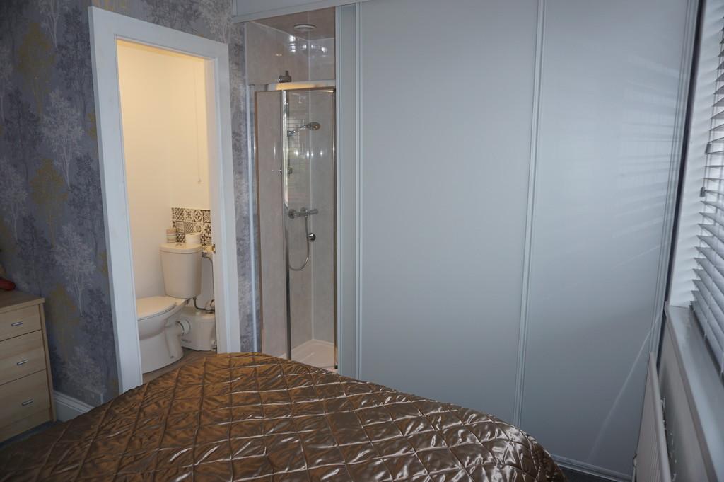 BEDROOM TWO 10' 11" x 11' 03" (3.33m x 3.43m) Having double glazed window to front, built in wardrobe with shelving and hanging rail, incorporating walk in shower cubicle with sliding door and mains fed shower over, radiator and door to en suite.