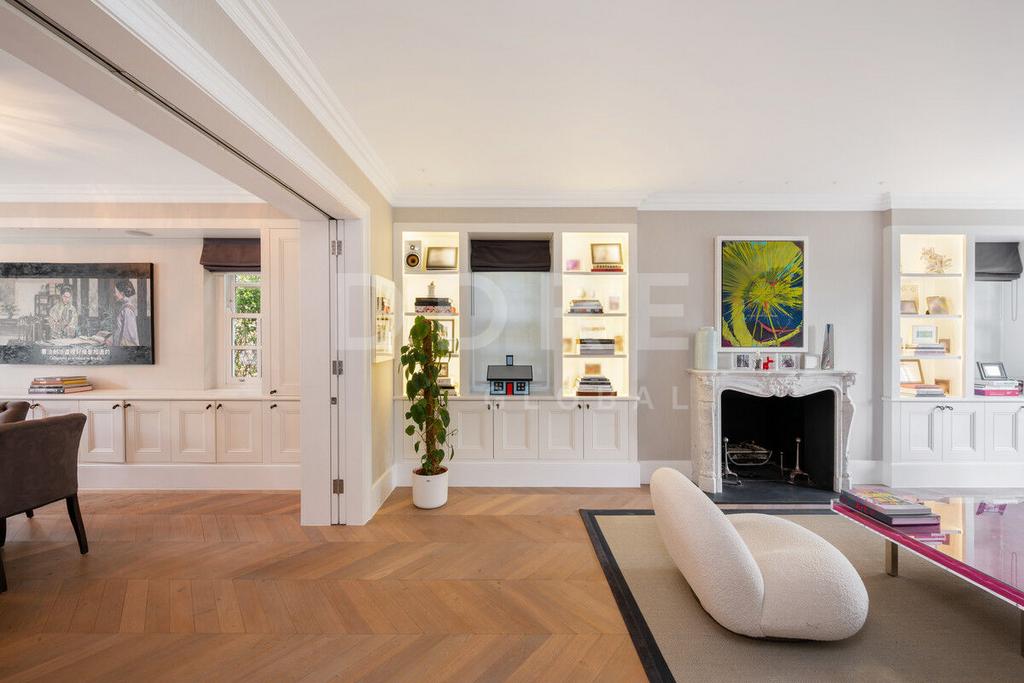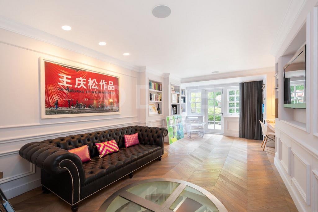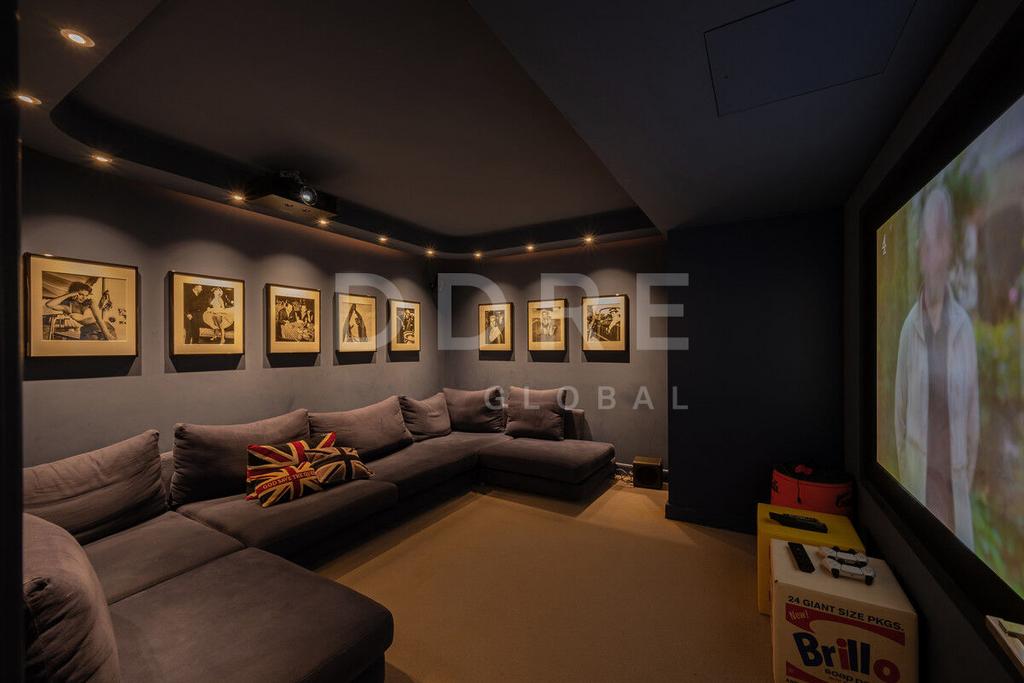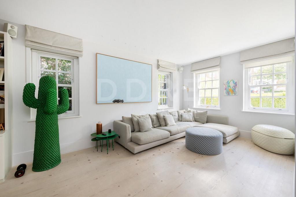 The lower floor provides flexible options for additional living accommodation or extra bedrooms, featuring three reception rooms—two of which include en-suite bathrooms, making them also perfect for nanny accommodation or hosting guests. This level also includes a cinema room, a gym, a utility room, and another guest W/C. Access to the garden is conveniently available from this floor as well.