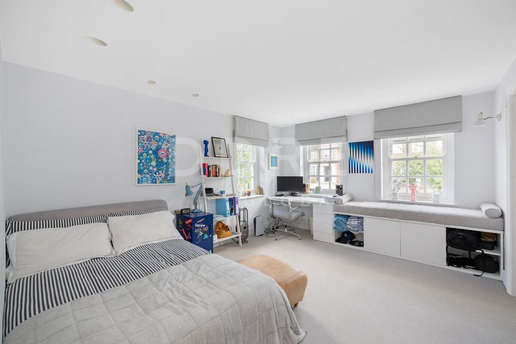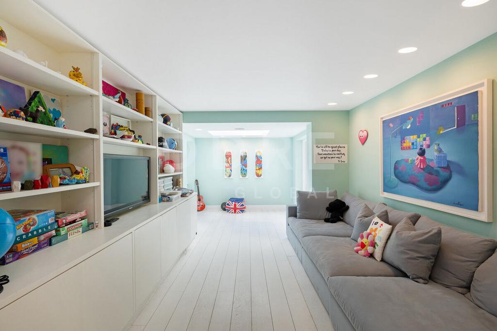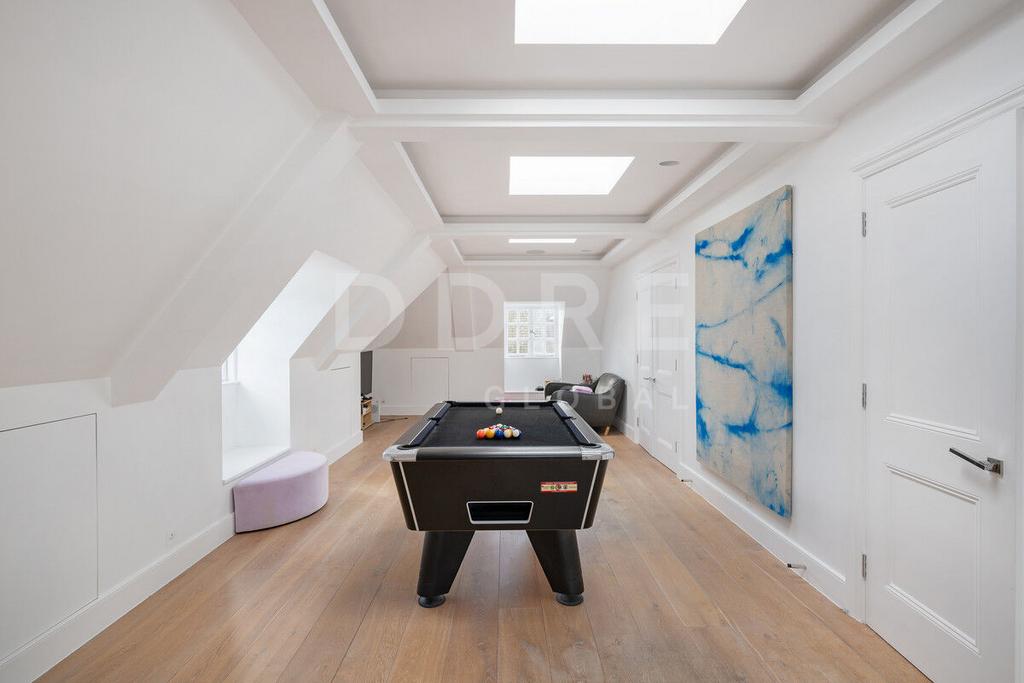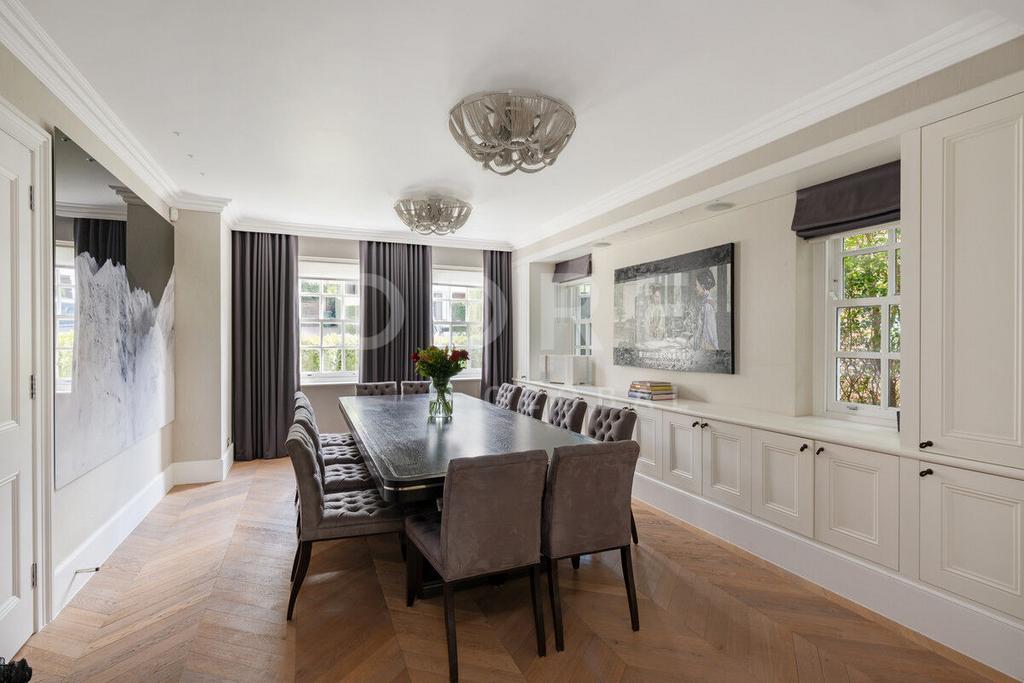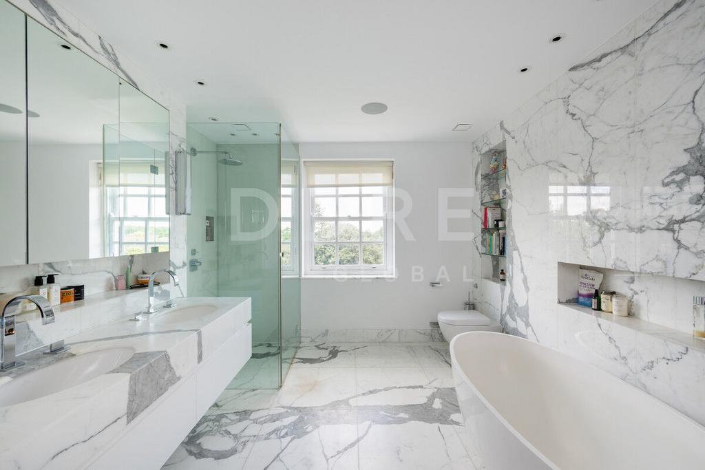 The lower floor provides flexible options for additional living accommodation or extra bedrooms, featuring three reception rooms—two of which include en-suite bathrooms, making them also perfect for nanny accommodation or hosting guests. This level also includes a cinema room, a gym, a utility room, and another guest W/C. Access to the garden is conveniently available from this floor as well.