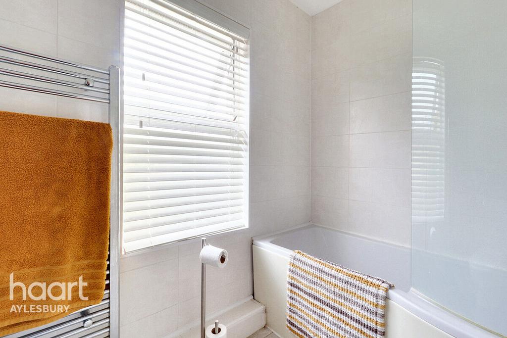 At the front of the property in-between bedroom 1 and 2, separate bath tub, toilet and sink basin, window at the front.