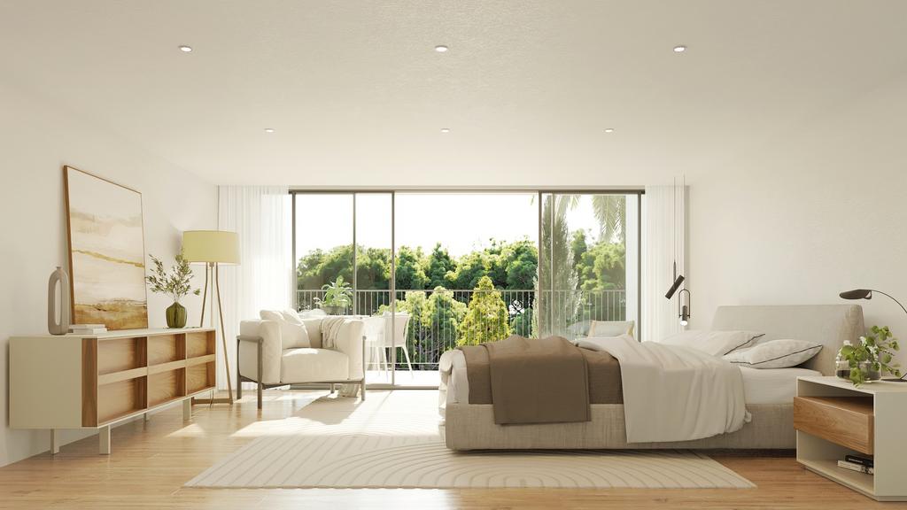 Upstairs, the first floor boasts four luxurious suites, two with walk-in closets, each opening onto a south-facing balcony that invites natural sunlight and wonderful views. This level also features a library area, providing a quiet corner for study or relaxation, while additional balconies and terraces throughout the villa offer varied, serene vantage points to enjoy the surroundings.