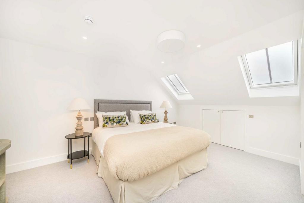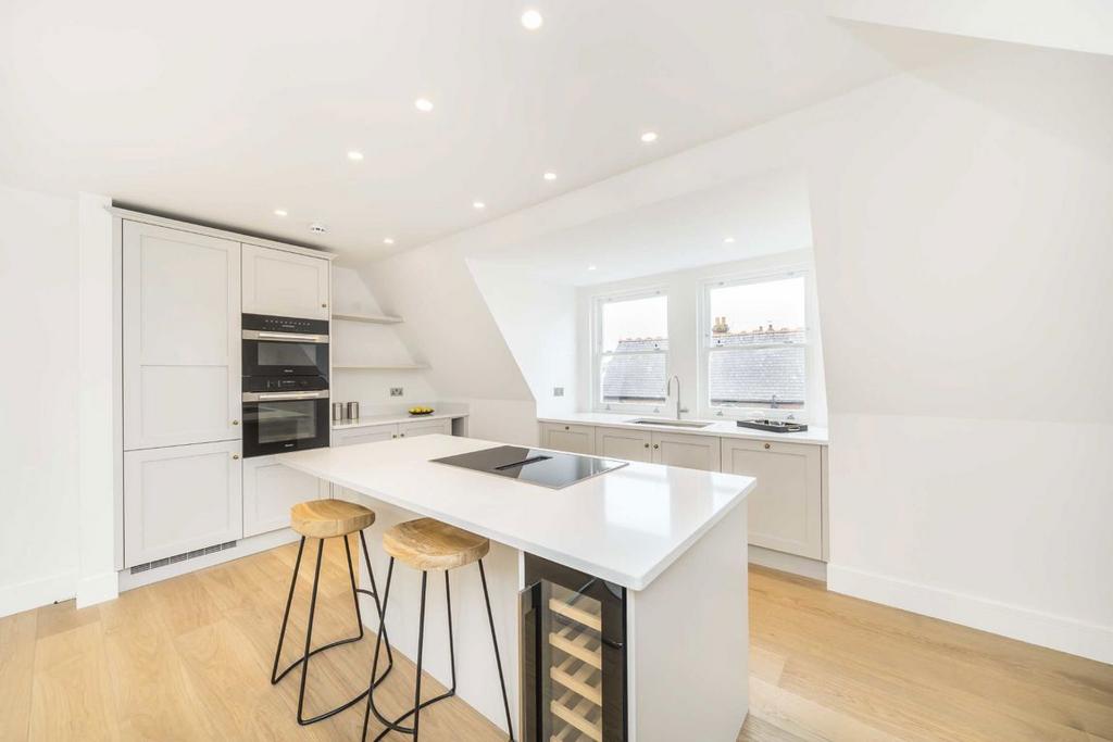 An immaculate top floor laterally designed conversion bespoke to a high quality finish. This home embodies functionality, impeccable design and finish with intelligent lighting throughout as well as open space for versatility. This property has been designed with key features such as engineered wooden flooring, fittings from John Lewis of Hungerford as well as a composition of period features blended elegantly with modern fittings. The property boasts circa 1,200 sq.ft of internal living space, has access to relaxing communal gardens, will be sold with a share of the freehold and no onward chain.