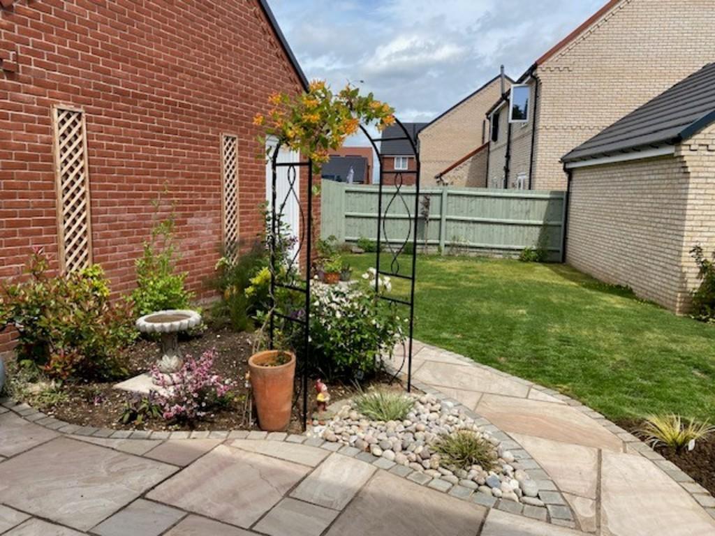 ESTABLISHED REAR GARDENS Privately enclosed with lockable gated access from the driveway, outside lights, external electric socket and tap. The garden includes a shaped lawned area, stocked borders and a delightful coloured paved patio with brick trimmed edges and matching pathway leading from the personnel door in the Garage to the main patio.