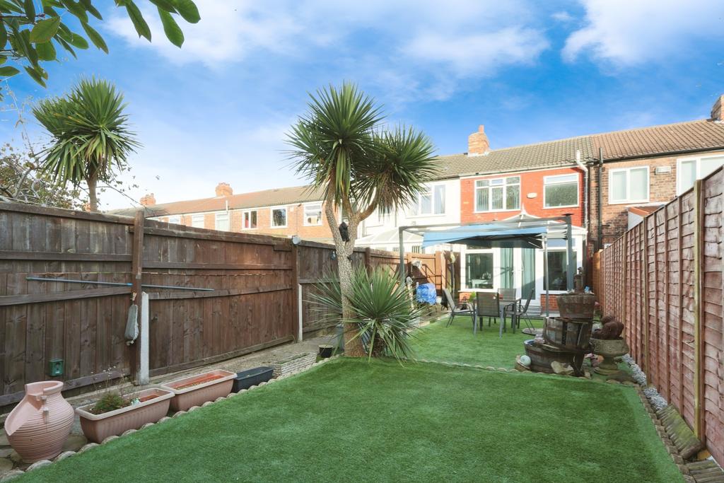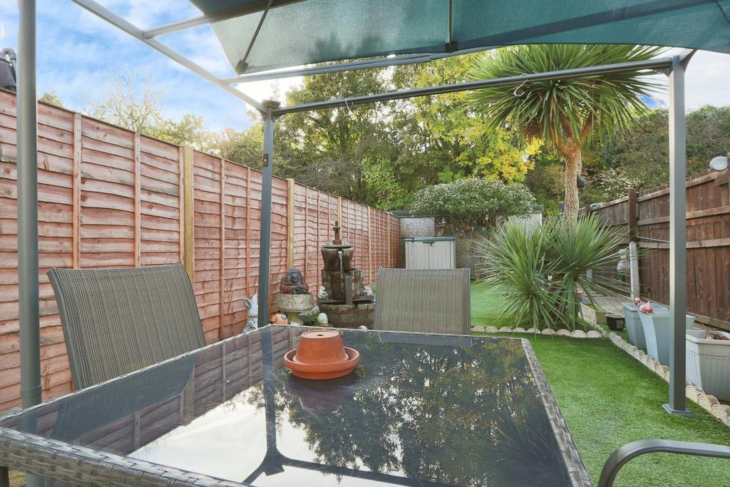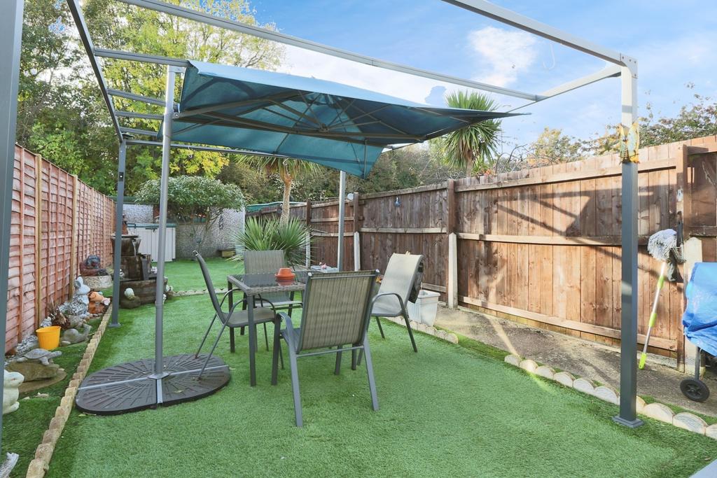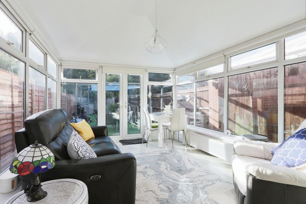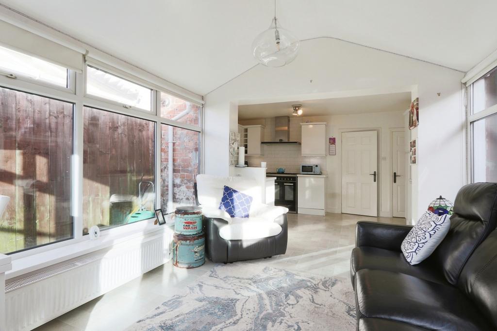 The sunny summer room at the rear of the property is a highlight, featuring windows on all sides and a solid roof, making it a perfect spot to enjoy the garden views all year round. The doors open out onto a low-maintenance garden, offering a charming mix of artificial grass and patio. Plus, there's a full garage at the end of the garden, providing extra storage or potential for more off-street parking if needed.