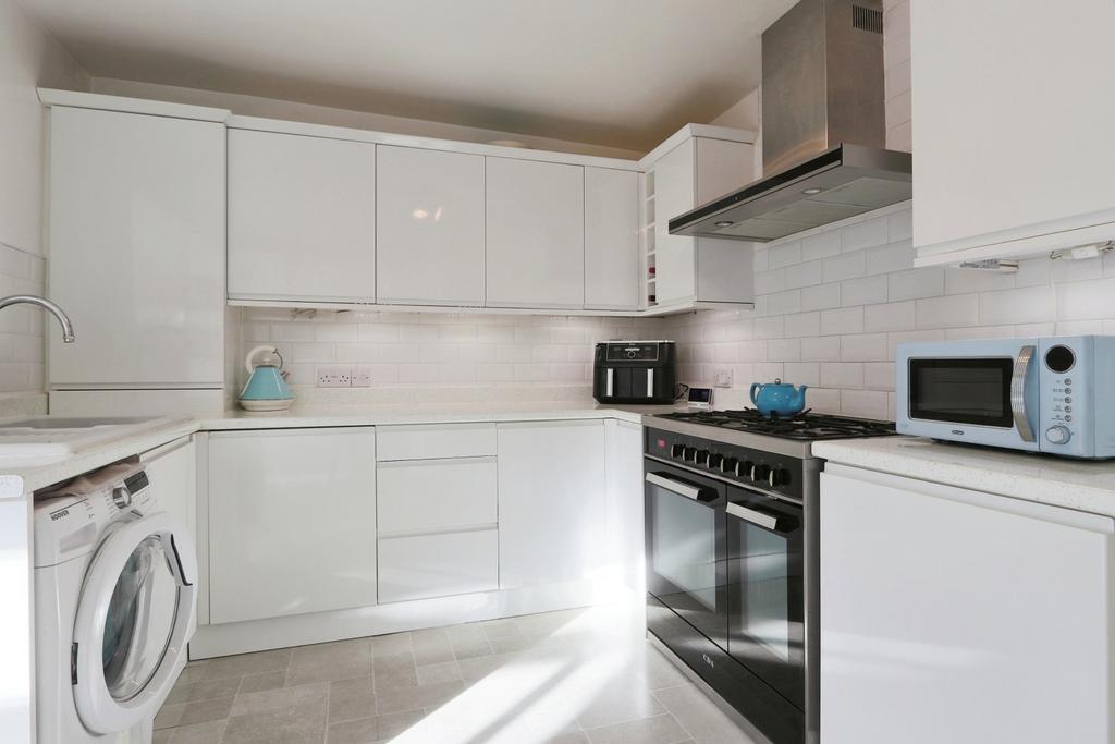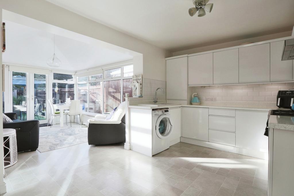 Step into this delightful property through the entrance lobby and find yourself in the inviting living room at the front, complete with a large bay window that floods the room with natural light. Moving towards the back, you'll discover an open-plan kitchen with sleek, handleless units and ample space for all your appliances. It's a great place to cook and socialise with family and friends.